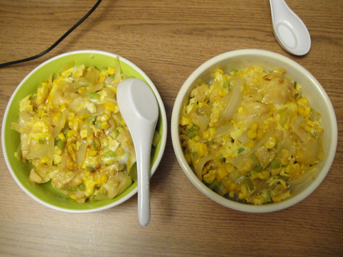 沒有全熟的蛋好美味,洋蔥本身已經很甜了,再加上芹菜和玉米更是甜的不得了,可惜沒有美味的柴魚片,不然應該會更完美!這碗好營養好健康,不但不會胖(是嗎?),還很有飽足感!(廢話,這麼大一碗…)