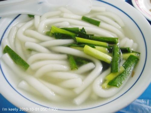 清淡的大骨湯,滑溜的米苔目,配著韭菜一起吃,完全不需再添加其他調味,就已經相當美味。